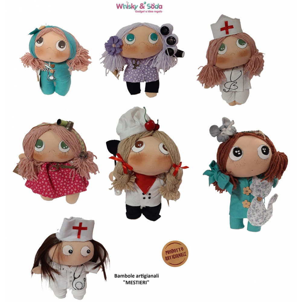Bambole artigianali realizzate completamente a mano. Diversi soggetti ispirati al mondo del lavoro.