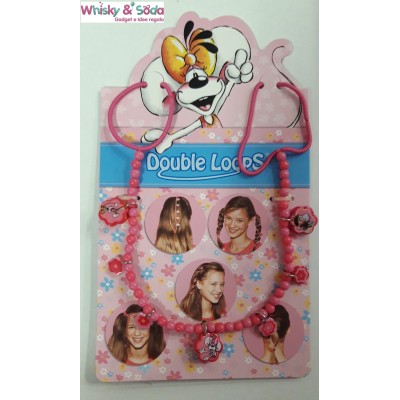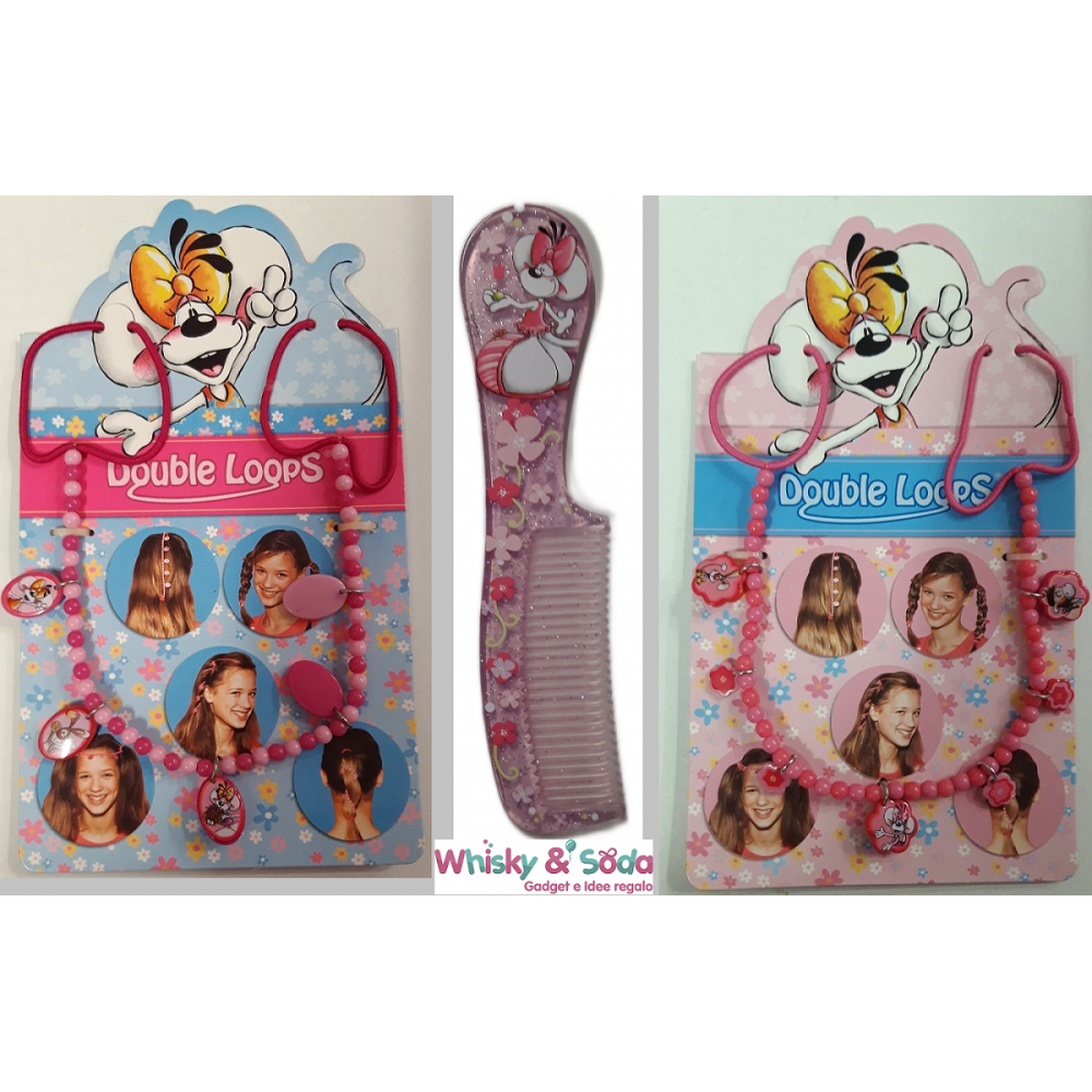 Set acconciatura capelli composto da due double loops in colore rosa con charms di diversa forma e con differenti persoggi del fantastico mondo Diddl. Allegato al kit un pettine in colore rosa glitter. Un accessorio irresistibile per l' acconciatura sotto forma di un elastico non convenzionale . Il design di alta qualità e il materiale di qualità garantiscono una lunga durata e un'usura minima dell'elastico nell'uso quotidiano. L'elastico può essere utilizzato anche come accessorio di moda per la borsetta o l'abbigliamento.