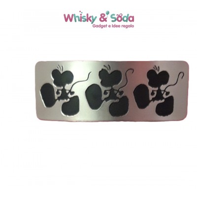 Fermaglio per capelli in metallo leggero colore acciaio, con incise tre immagini di Diddl in colore nero. Una vera rarità!!!