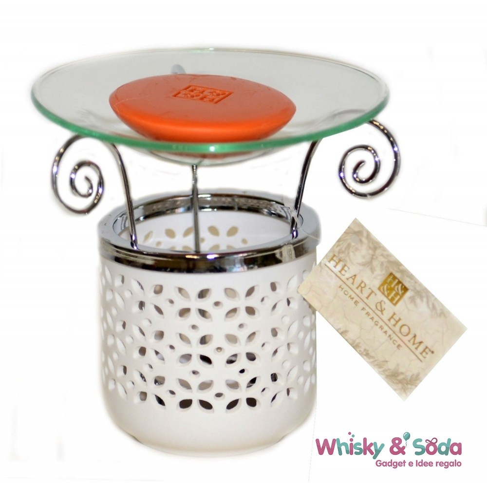 BRUCIATORE HEART & HOME Ceramica Bianca e Piattino Vetro