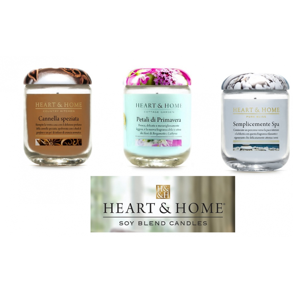 Le candele profumate Heart & Home - a base di soia - assicurano una nuova e migliore esperienza olfattiva, che ha il suo cuore nella natura. La scelta di utilizzare soia di origine naturale, piuttosto che la tradizionale cera di paraffina che domina il mercato delle candele, è alla base dello sviluppo della gamma Heart & Home. Condividiamo le stesse preoccupazioni dei nostri clienti e, sempre più consapevoli dell'impatto che le nostre scelte hanno sull'ambiente, abbiamo preferito investire in una risorsa rinnovabile, sostenibile e più gentile per il nostro pianeta. Realizzata da una originale formula a base di soia, questa cera atossica, non solo è biodegradabile, ma genera una candela che brucia molto più a lungo, più lentamente e ad una temperatura inferiore rispetto alla paraffina. Inoltre, non rilascia quella fuliggine che emana una normale candela, consentendo di avere aria, ma anche superfici più pulite.