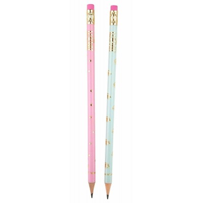 Tre confezioni del set composto da 2 matite con gomma Lisa & Lena. Le matite dal design alla moda J1MO71 non devono mancare in nessuna cartella. All'estremità superiore della penna si trova una gomma da cancellare. Il set di matitr si può condividere con la migliore amica o sorella.