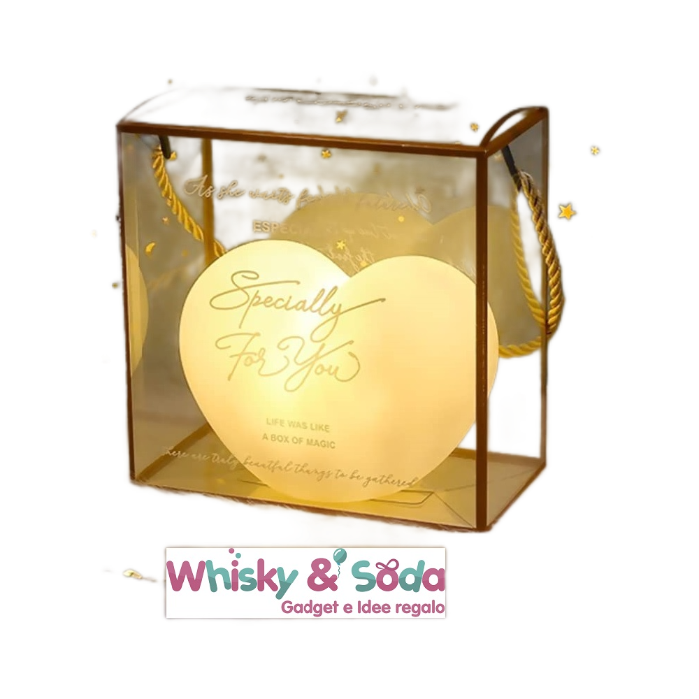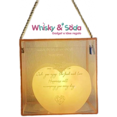 Lampada luce led, forma cuore, confezionata in sacchetto in acetato trasparente con incise frasi d'amore. Una idea originalissima per San Valentino. Ideale come luce notturna, o per creare una romantica atmosfera. Realizzata con materiale molto resistente.
