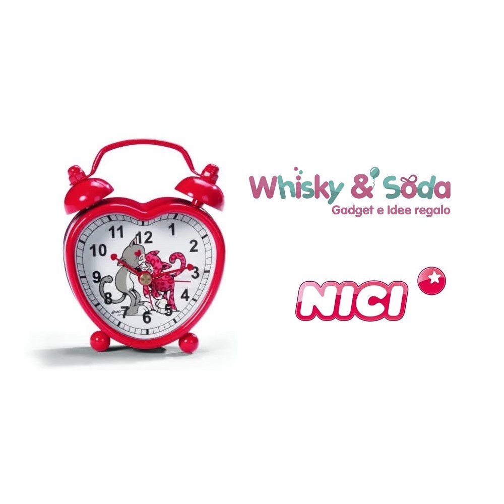 I simpatici gattini innamorati della linea "love cats" by Nici propongono questa bellissima e particolarissima sveglietta in metallo a forma di cuore. È alimentata da batteria mod. button LR44. Prevista la funzione allarme sveglia.