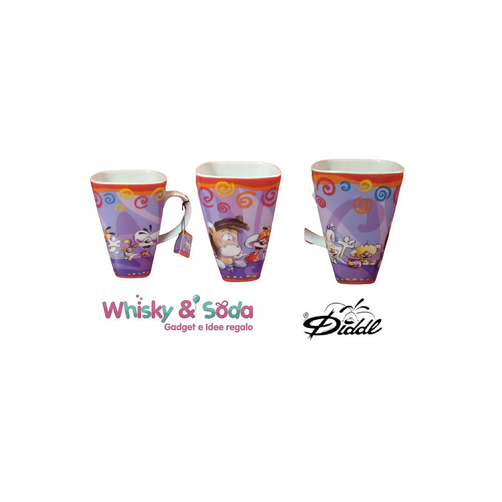 Bellissima e particolarissima tazza, dai vivaci e sgargianti colori; in grafica sono presenti, oltre a Diddl, tutti i suoi più cari amici: Diddlina, Pimboli, Mimihopps, Galupy e Bibombl. Una vera rarità per veri collezionisti!!!