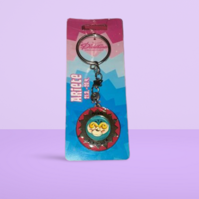 Simpatico portachiavi in metallo con la figura di Diddl o Diddlina, ispirato ai segni zodiacali.