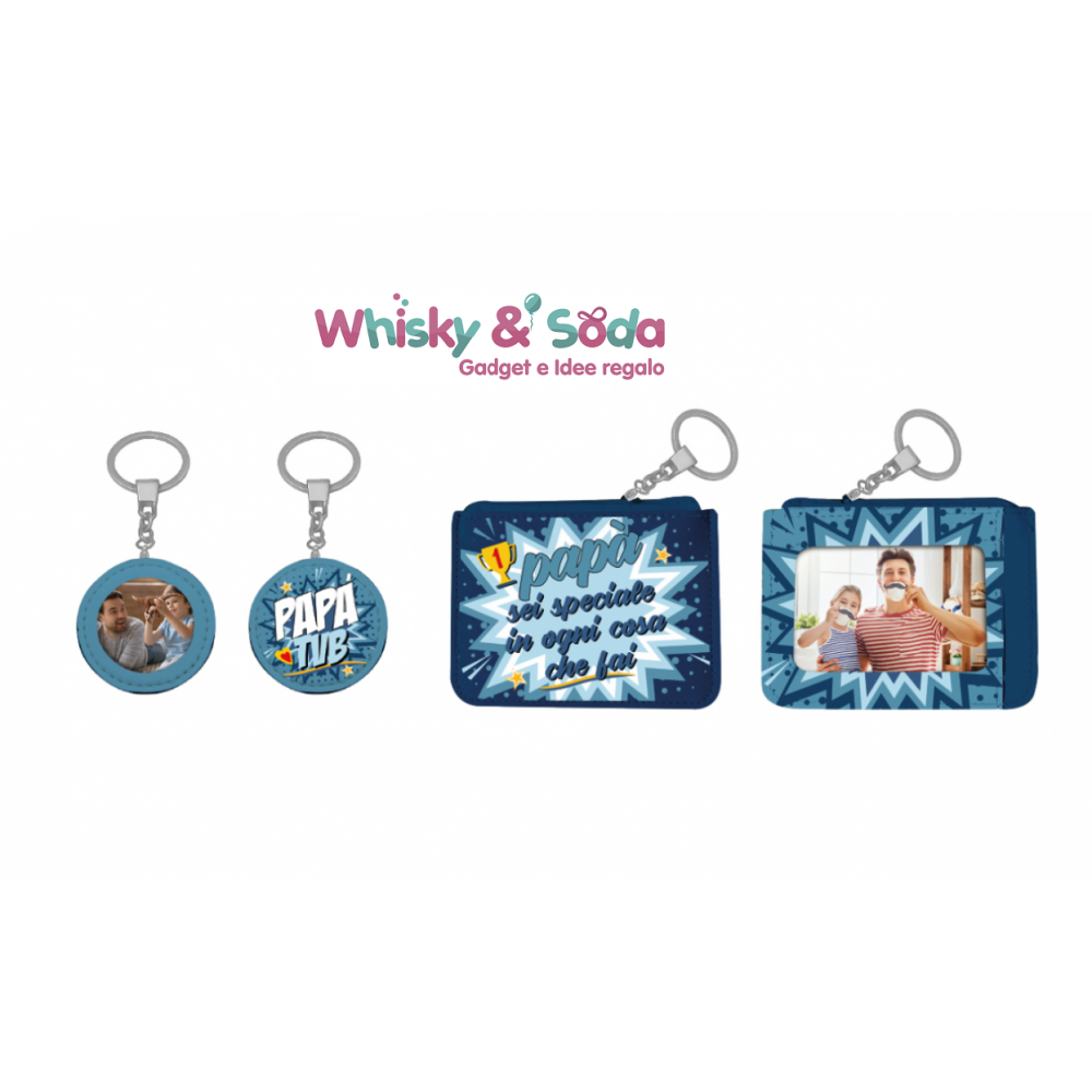 Una simpatica idea regalo per la festa del papà. Portachiavi in due modelli con diverse funzionalità: portachiavi-portafoto (il modello rotondo), portachiavi-portafoto-portamonete con chiusura zip il modello rettangolare.
