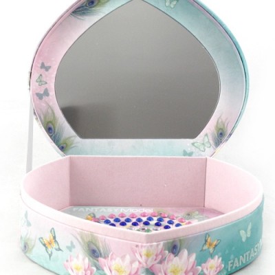 La scatola contiene uno specchietto fisso, alloggiato sotto il coperchio e un kit di applicazioni per personalizzarla. Sfruttabile anche come portagioie per conservare i tuoi bijoux.