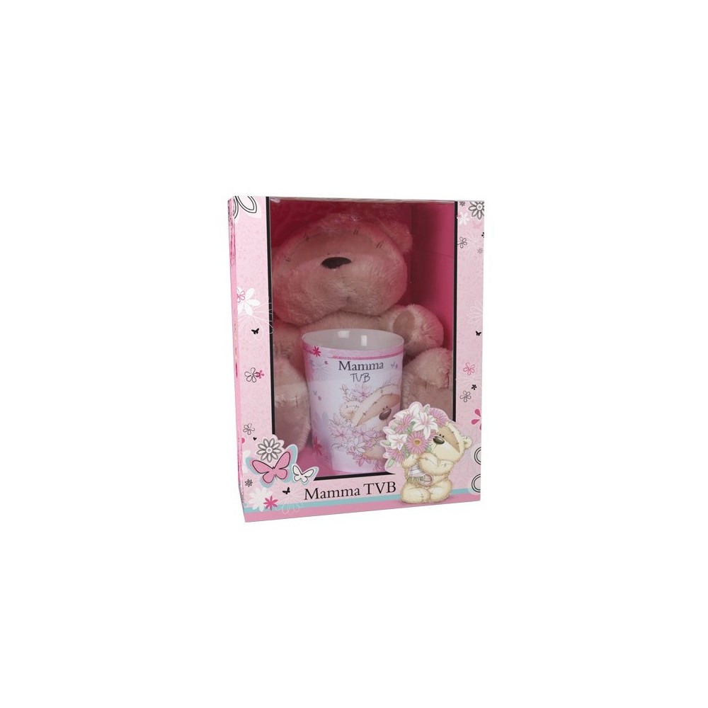 Il tenerissimo peluche di Fizzy Monn in abbinamento con tazza in ceramica con dedica per la mamma. Frase tazza: "Mamma TVB...che fortuna avere una mamma come te!"